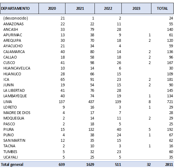 Fuente: Oficina General de Tecnologías de la Información, Base de datos de defunciones cerrada, 2020-2023